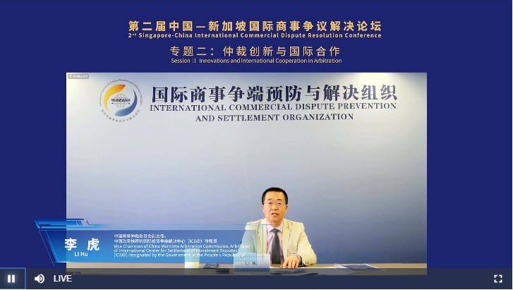 中國海仲副主任李虎受邀出席本屆論壇開幕式,并在論壇專題二“仲裁創(chuàng)新與國際合作”環(huán)節(jié)發(fā)表演講。他表示,仲裁創(chuàng)新可有效增加仲裁吸引力和公信力,而仲裁創(chuàng)新一般會體現(xiàn)在仲裁規(guī)則中。國際范圍內,規(guī)則與實踐的相互借鑒、仲裁國際合作就必不可少,仲裁國際化、國際仲裁趨同發(fā)展勢不可擋,仲裁創(chuàng)新和國際合作是促進仲裁發(fā)展的巨大動力。就我國仲裁創(chuàng)新發(fā)展,結合我國機構仲裁管理實際,他提出三點建議:一是要切實增加仲裁程序的透明度;二是要進一步尊重當事人意思自治,維護仲裁庭的獨立裁判地位;三是要加強仲裁行業(yè)頂層設計,在機構仲裁之外,提供臨時仲裁服務。