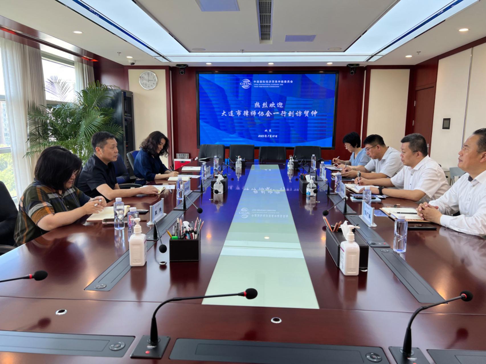 2023年7月10日,貿(mào)仲副主任兼秘書長王承杰在京接待大連市律師協(xié)會會長曲之勇等一行。