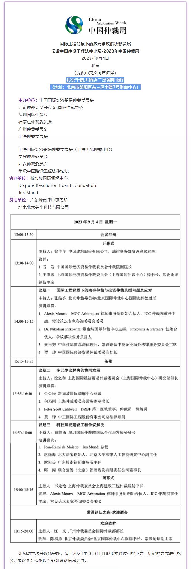 【中國仲裁周活動預(yù)告】國際工程背景下的多元爭議解決新發(fā)展