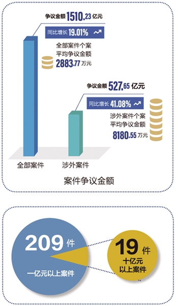 依法公平公正處理當(dāng)事人爭(zhēng)議,是貿(mào)仲委業(yè)務(wù)發(fā)展的重要基礎(chǔ)?!秷?bào)告》顯示,2023年貿(mào)仲委仲裁案件量質(zhì)齊升,新受理案件5237件,同比增長(zhǎng)28.17%,爭(zhēng)議金額人民幣1510.23億元(以下幣種均為人民幣),同比增長(zhǎng)19.01%,連續(xù)六年破千億元大關(guān),個(gè)案平均爭(zhēng)議金額2883.77萬元,案件數(shù)量和標(biāo)的額均創(chuàng)歷史新高。案件國(guó)際化程度持續(xù)提升。案件涉及88個(gè)國(guó)家和地區(qū),當(dāng)事人來自71個(gè)國(guó)家和地區(qū)。雙方均為境外當(dāng)事人的國(guó)際案件62件。2023年首次實(shí)現(xiàn)“一帶一路”案件國(guó)別基本全覆蓋。案件程序復(fù)雜多樣。涉及多方當(dāng)事人案件1072宗,占總受案量20.5%;涉及多份合同案件906宗,占總受案量17.3%;涉及追加當(dāng)事人程序案件65件,合并仲裁案件64件。審理方式靈活高效。貿(mào)仲委仲裁庭結(jié)合案情采用大陸法系、英美法系方式審理案件,結(jié)合具體案件情形,靈活采用不同審理方式,依法保證仲裁程序公平正當(dāng),及時(shí)維護(hù)當(dāng)事人合法權(quán)益。案件爭(zhēng)議類型新穎多元。針對(duì)出現(xiàn)的新類型爭(zhēng)議,進(jìn)一步規(guī)范案件分類管理,其中建設(shè)工程、知識(shí)產(chǎn)權(quán)、金融等熱點(diǎn)領(lǐng)域案件增幅明顯。值得注意的是,新類型案件還呈現(xiàn)出新型金融爭(zhēng)議復(fù)雜疑難、案件數(shù)量持續(xù)增長(zhǎng),能源類案件保持增長(zhǎng)態(tài)勢(shì),知識(shí)產(chǎn)權(quán)類案件比重增加,ESG等新興領(lǐng)域糾紛進(jìn)入視野等諸多特點(diǎn)。
