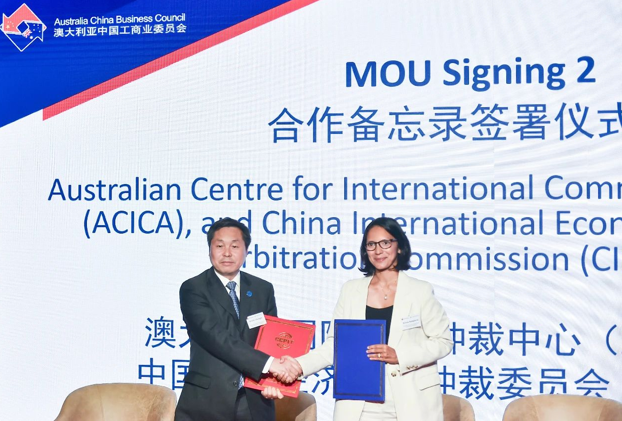 2024年4月15日,在中國貿(mào)促會(huì)會(huì)長任鴻斌率中國企業(yè)家代表團(tuán)訪問澳大利亞期間,由中國貿(mào)促會(huì)和澳中工商業(yè)委員會(huì)共同主辦的中國-澳大利亞商務(wù)研討會(huì)在澳大利亞悉尼舉行。中國國際經(jīng)濟(jì)貿(mào)易仲裁委員會(huì)(以下簡(jiǎn)稱“貿(mào)仲”)副主任兼秘書長王承杰與澳大利亞國際商事仲裁中心主席喬治婭·奎克(Georgia Quick)在悉尼簽訂了合作協(xié)議。