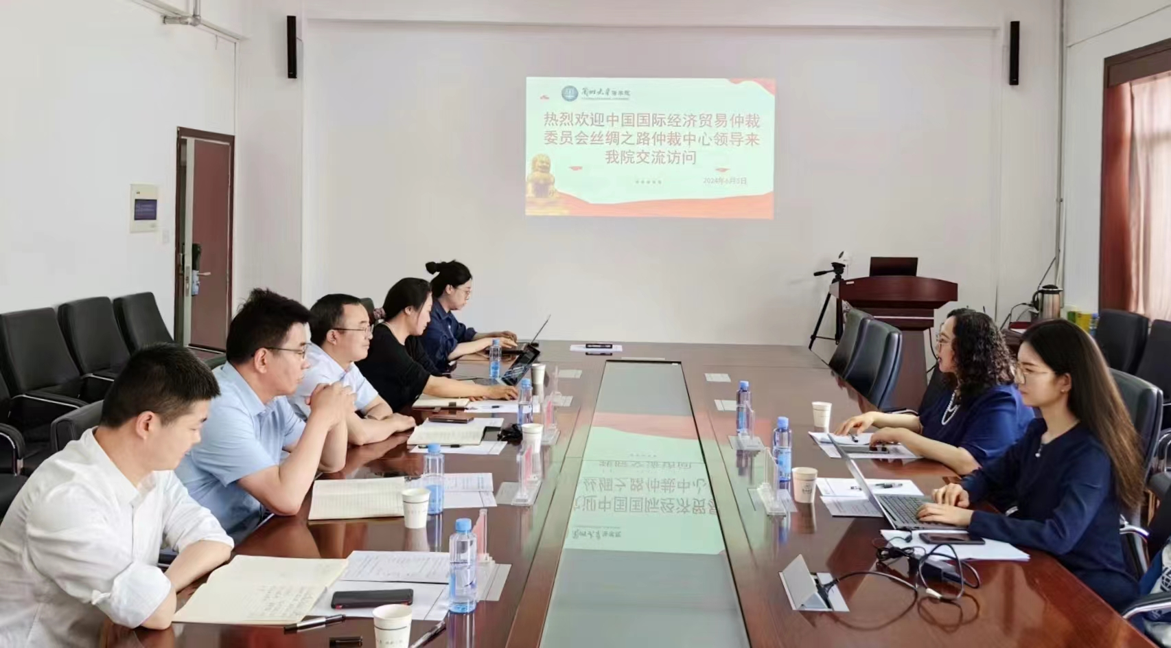 6月3日,中國國際經(jīng)濟貿(mào)易仲裁委員會絲綢之路仲裁中心(簡稱“貿(mào)仲絲路中心”)副秘書長蔣紅梅一行赴蘭州大學法學院調研,蘭州大學法學院黨委書記涂思龍,副院長韓雪梅,黨委副書記賀軍文,黨委副書記、副院長孫龍宇會見接待,雙方圍繞“支持涉外法治人才培養(yǎng)、服務‘一帶一路’高水平對外開放”進行座談交流。