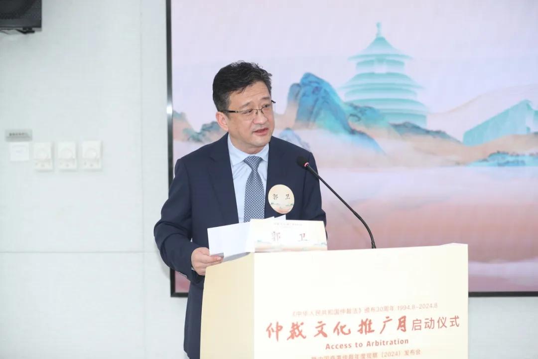 郭衛(wèi)在致辭中表示,仲裁文化是提升仲裁公信力的重要源泉,為仲裁機(jī)構(gòu)建設(shè)注入內(nèi)生動(dòng)力,并為仲裁從業(yè)人員提供智識(shí)支持。在仲裁法頒布30周年之際,啟動(dòng)仲裁文化推廣月活動(dòng)正當(dāng)其時(shí)。北京律協(xié)一直支持并積極推動(dòng)首都仲裁事業(yè)的發(fā)展,北京律協(xié)商事仲裁法律專業(yè)委員會(huì)是全國(guó)首家且最大規(guī)模的仲裁專委會(huì),代表了律師行業(yè)中先進(jìn)的仲裁力量。北京律師也以專業(yè)能力強(qiáng)、職業(yè)素養(yǎng)高在業(yè)內(nèi)享有盛譽(yù)。通過(guò)與北京律協(xié)共同舉辦仲裁文化推廣月活動(dòng)將會(huì)在相當(dāng)大的范圍內(nèi)弘揚(yáng)傳播仲裁文化。同時(shí),他表達(dá)了對(duì)未來(lái)的期待,希望通過(guò)仲裁文化推廣月期間的一系列豐富、專業(yè)活動(dòng),邀請(qǐng)各界共同參與,以多元視角推出一套推廣仲裁文化的“組合拳”。他強(qiáng)調(diào),當(dāng)前我國(guó)正積極打造國(guó)際一流仲裁機(jī)構(gòu)和建設(shè)國(guó)際商事仲裁中心,通過(guò)仲裁文化推廣月這一平臺(tái),借助各界同仁對(duì)仲裁文化的深度思考,提煉出國(guó)際仲裁文明的共通元素,共同構(gòu)建以中國(guó)文化底蘊(yùn)為基礎(chǔ)的中國(guó)特色仲裁文化。在為仲裁機(jī)構(gòu)加強(qiáng)自身文化建設(shè)提供思考的同時(shí),推動(dòng)中國(guó)仲裁走出一條承載中國(guó)仲裁文化基因、吸納世界仲裁制度營(yíng)養(yǎng)的健康發(fā)展之路。