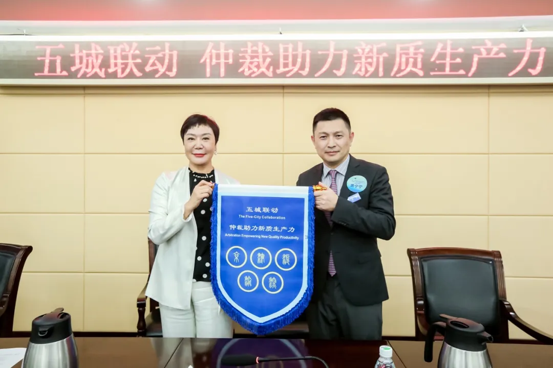 活動最后舉行了仲裁業(yè)務交流會主辦地交接儀式。北京市律師協(xié)會副會長張麗霞將代表此次“五城聯(lián)動,仲裁助力新質生產力”活動的旗幟交付給上海市律師協(xié)會副會長黃寧寧。