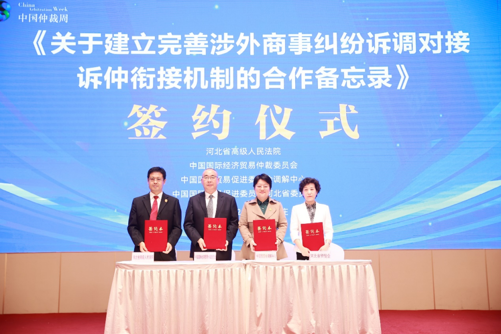在合作協(xié)議簽署及發(fā)布儀式環(huán)節(jié),貿(mào)仲委與河北省高級人民法院、中國國際貿(mào)易促進(jìn)委員會(huì)調(diào)解中心、中國國際貿(mào)易促進(jìn)委員會(huì)河北省委員會(huì)就共建“涉外商事爭議訴調(diào)對接、訴仲銜接工作機(jī)制”“服務(wù)保障雄安新區(qū)及河北自貿(mào)試驗(yàn)區(qū)建設(shè)機(jī)制”“涉外知識產(chǎn)權(quán)聯(lián)合保護(hù)機(jī)制”“共同推進(jìn)法治化營商環(huán)境建設(shè)機(jī)制”簽署了《合作備忘錄》,意在為河北省引入國際先進(jìn)仲裁、調(diào)解機(jī)構(gòu)服務(wù),便利當(dāng)事人一站式爭議解決,各方合力,共同服務(wù)保障雄安新區(qū)及河北自貿(mào)試驗(yàn)區(qū)建設(shè),優(yōu)化河北省營商環(huán)境。