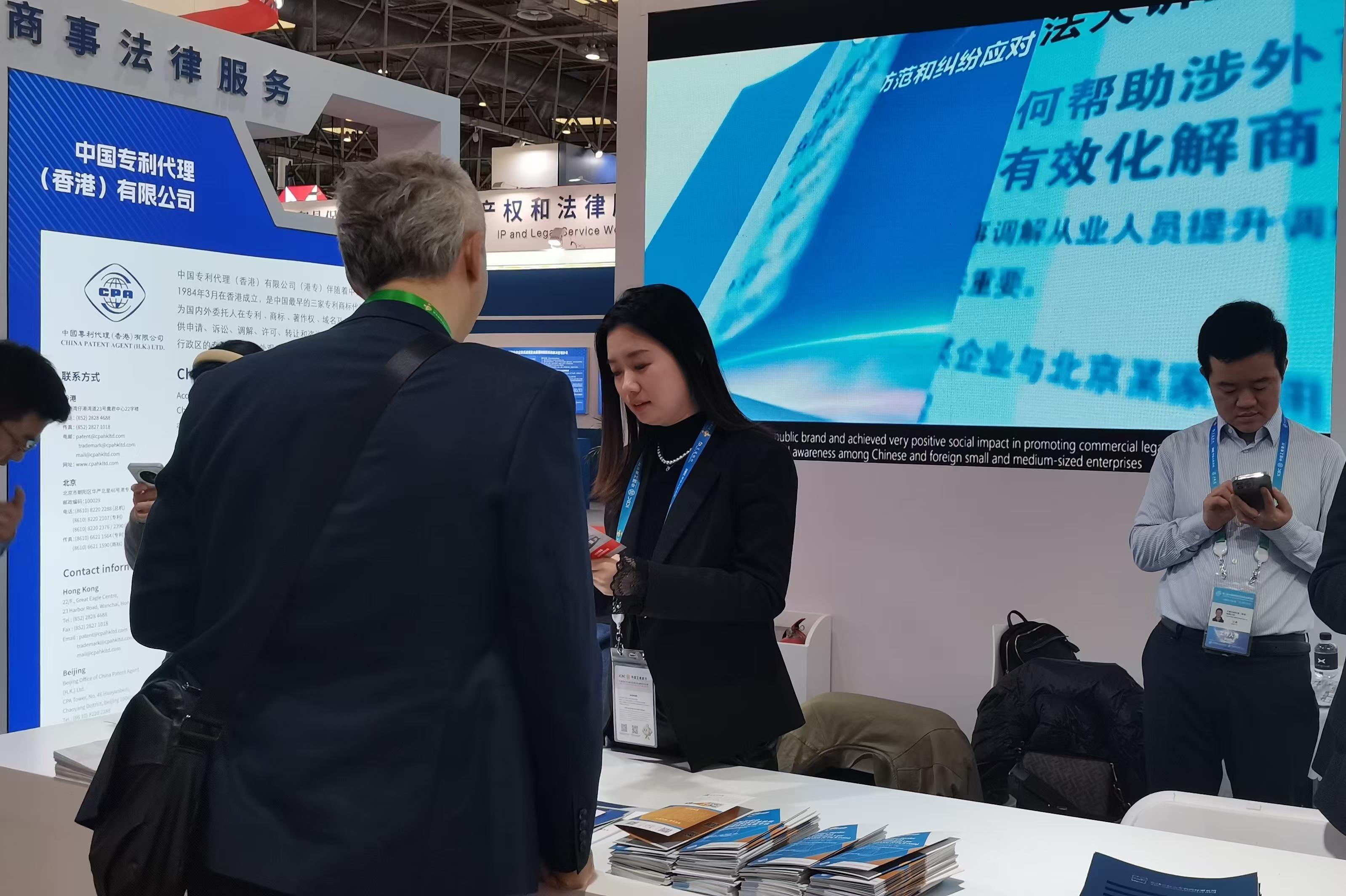 緊鄰這一展臺的,同樣是法律類機構或組織,他們也在這次鏈博會上承擔著相關工作任務。例如,中國貿促會會同北京市知識產權局、順義區(qū)市場監(jiān)管局等單位,設立知識產權和法律服務工作站,多家機構專業(yè)人員進駐,開設專利和商標申請受理窗口,建立知識產權糾紛快速處理機制。
