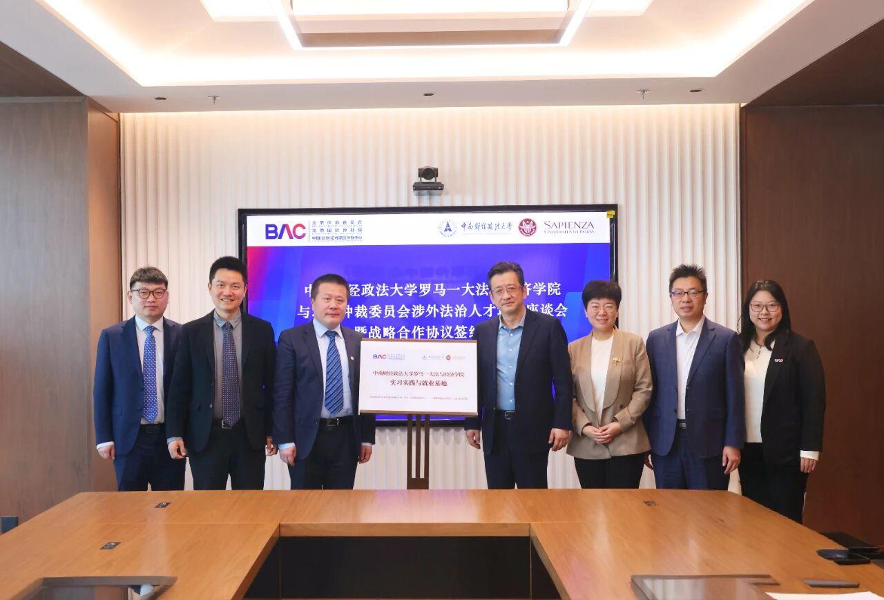 座談會后,雙方簽署《戰(zhàn)略合作協(xié)議》,并共同為“中南財經(jīng)政法大學羅馬一大法與經(jīng)濟學院實習與就業(yè)基地”揭牌。雙方均表示,期待通過共建實習與就業(yè)基地、聯(lián)合開展主題研討、加強學術(shù)交流與實務合作等方式,進一步提升學生的實踐能力和國際視野,推動涉外法治人才培養(yǎng)取得實質(zhì)性成效。