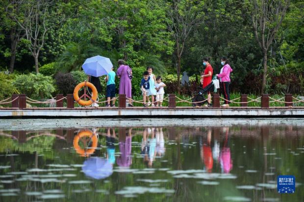 市民在茅洲河畔的燕羅濕地公園里遛彎(2022年7月8日攝)。 新華社記者 梁旭 攝