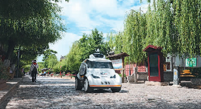 5G無人巡邏車在云南麗江古城進行巡邏作業(yè)。