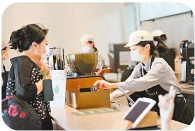 在星巴克西安翠華里手語店,語音識別系統(tǒng)、雙面點(diǎn)單屏、手寫板以及帶編號的手持菜單等設(shè)施讓點(diǎn)單交流不受語言局限。圖為聽障咖啡師李莎(右)為顧客制作咖啡。新華社記者 李一博攝