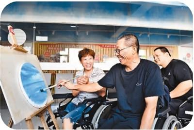 山東省威海市長城愛心大本營2015年起實(shí)施“輪椅上的畫家夢”助殘扶貧公益項(xiàng)目,聘請老師教授油畫,并舉辦殘疾人油畫展覽和拍賣會等活動,幫助殘疾人創(chuàng)收增收。新華社記者 郭緒雷攝