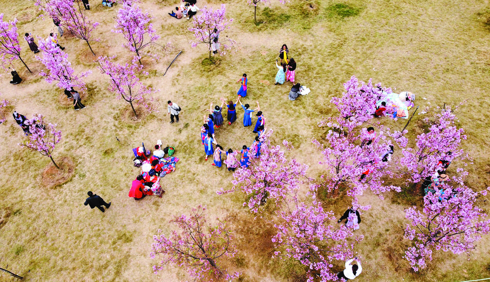 ④每年花季,很多市民都來園博園賞花“打卡”。