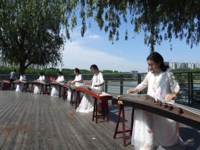 街頭游園音律悠悠。李建華攝