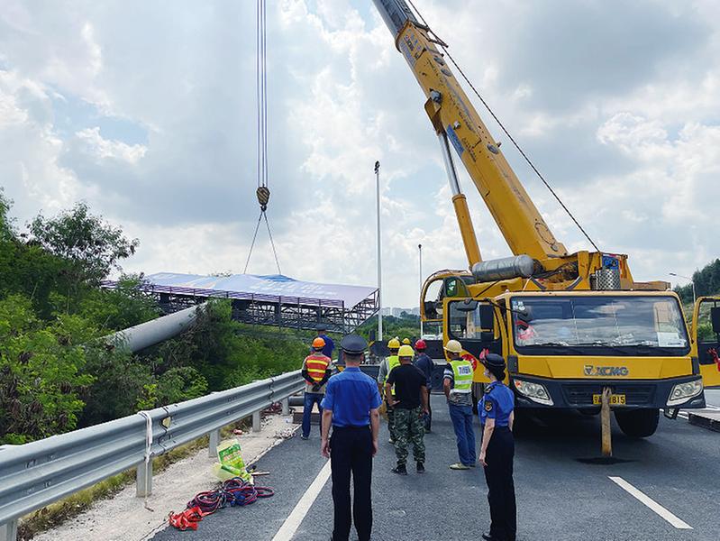 此前,執(zhí)法人員在梳理廣告設施案件時,整理出一批年久失修且不同程度出現(xiàn)破損、銹蝕、松動等問題的廣告設施,這些廣告不僅影響市容市貌,還存在極大的安全隱患。為了徹底消除隱患,城管執(zhí)法人員將8處隱患最大的廣告牌列入8月、9月的拆除行動中。為確保拆除行動順利進行,執(zhí)法人員前期多次到現(xiàn)場進行實地勘查、測量,與拆除公司、廣告設置地所有人確認拆除方法;并對廣告設置業(yè)主、周邊商戶等講解相關法律法規(guī),逐戶下發(fā)《拆除溫馨提示》,做好宣傳動員等工作。在實施拆除行動中,執(zhí)法人員往往在天沒亮時就到達拆除現(xiàn)場,做好警戒隔離。八九月份的南寧天氣高溫炎熱,執(zhí)法人員頂著烈日連續(xù)6~12小時堅守現(xiàn)場,疏導行人車輛繞行,做好現(xiàn)場群眾的解釋工作,最終順利拆除了這8處大型戶外廣告牌。