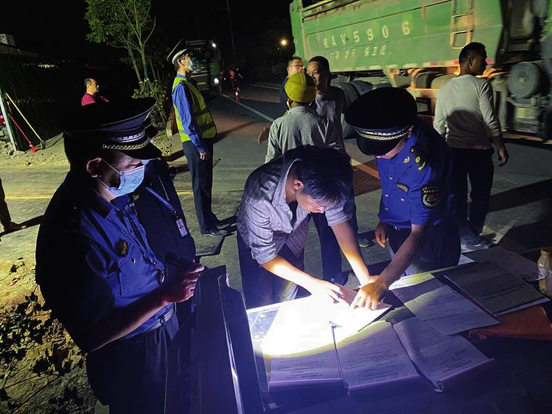“您好!我們是南寧市城管支隊執(zhí)法人員,檢查中發(fā)現(xiàn)你們工地存在車輛出入口未設置沖洗設施等問題,現(xiàn)要求你們及時改正?!苯冢枪軋?zhí)法隊員合理規(guī)劃每日巡查線路,實行“白+黑”出勤模式,全天候全覆蓋巡查,加大對重點區(qū)域、路段和時段的巡查力度,對做得不到位的建筑工地、消納場立即下達整改通知書,限期對存在問題進行整改,通過“常巡查、常復查、常督促”的執(zhí)法方式,將揚塵污染等問題解決在萌芽狀態(tài),持續(xù)擦亮“南寧藍”這張城市名片。