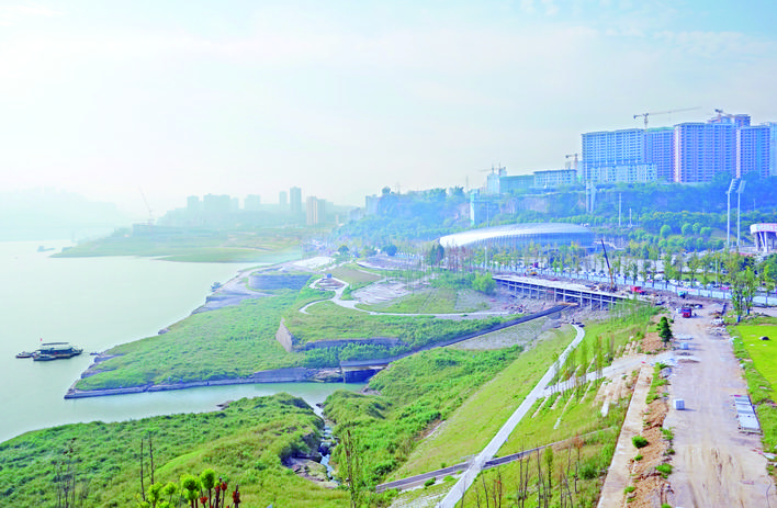 建設(shè)中的北濱公園中段,景觀錯(cuò)落有致已現(xiàn)雛形。