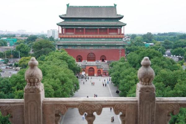 北京中軸線北端為北京鼓樓、鐘樓,南端為永定門,縱貫北京老城,全長7.8公里,是由一系列古代皇家建筑、城市管理設施和居中歷史道路、現(xiàn)代公共建筑和公共空間共同構成的城市歷史建筑群。