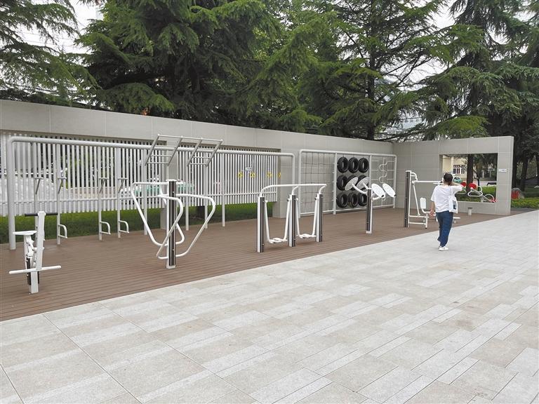 10月17日,記者在改造后的咸陽市咸通綠地廣場看到,這里配有休閑座椅、健身器材等設(shè)施,市民在此健身休閑。 本報記者 劉坤攝