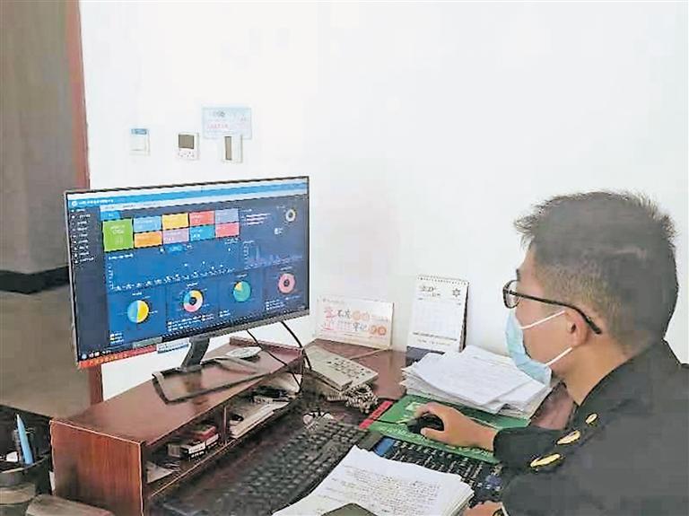 石嘴山市市場監(jiān)督管理局工作人員在電腦上進行監(jiān)督。 (圖片由受訪單位提供)