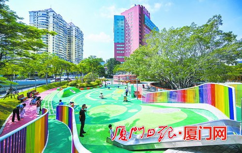 深田社區(qū)街頭小公園“鳳凰園”被改造為互動空間。(本報記者 林銘鴻 攝)
