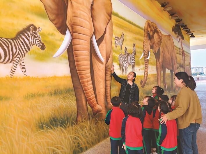 “這大象鼻子好長喲,還有斑馬,一個、兩個、三個,真好玩!”日前,在興化市五里大橋東岸橋下,一群小朋友在家長的陪同下觀賞“動物世界”。小朋友們好奇地睜大眼睛看著,不時用手觸摸。