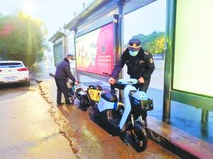 城管執(zhí)法隊(duì)員清理違停共享單車(chē)