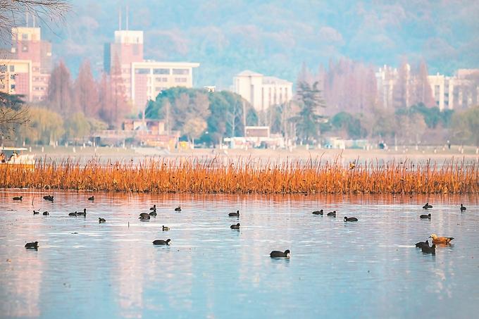“西寧村濕地不少植被沒有過多人工維護(hù),蘆葦蕩夏綠秋黃,按自然規(guī)律生長更美。”西寧村工作人員張惠告訴記者,“但眼下變化肉眼可見,魚和飛鳥變多了?!苯陙?,類似操作在南京不少濕地進(jìn)行著。紅山森林動物園北門湖,岸邊草坪上留出一個(gè)不打草的條帶,留出半個(gè)湖不打撈水草;玄武湖西北角出水口區(qū)域,留出3座不被人為干擾的小島;經(jīng)過23年“放養(yǎng)”,南京長江新濟(jì)洲國家濕地公園保育區(qū)幾乎恢復(fù)大自然最原始的樣貌……