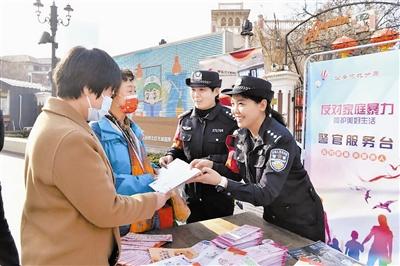公安巾幗普法志愿服務(wù)隊(duì)進(jìn)行現(xiàn)場(chǎng)宣傳服務(wù)。何欣攝