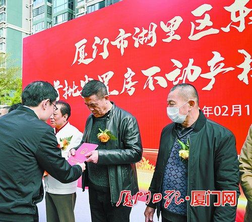 本月中旬,湖里區(qū)啟動湖邊御景安置房產(chǎn)權(quán)證發(fā)放儀式,增強居民獲得感。記者 林銘鴻