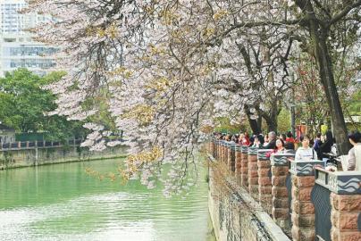 春天里,成都錦江邊上的泡桐花開滿枝頭,吸引眾多的市民前往觀賞拍照。 袁義明 攝