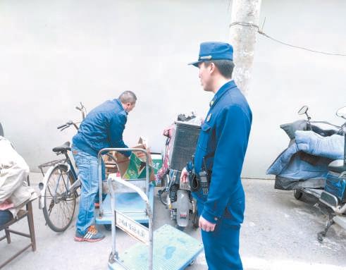 徐峰督促居民清理堆放在公共區(qū)域的雜物。