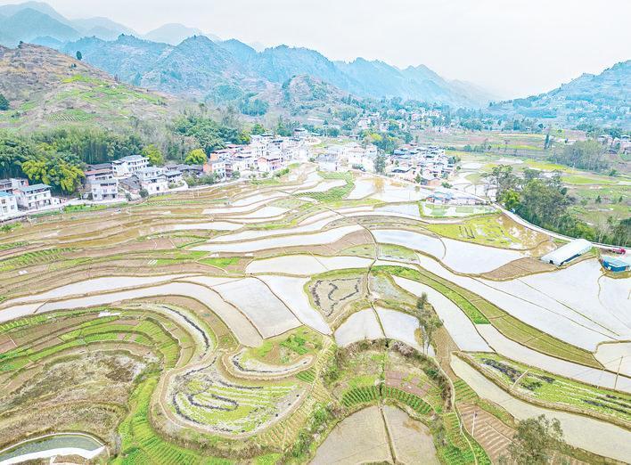 青山、良田構(gòu)成一幅生態(tài)畫卷。冉孟軍/圖