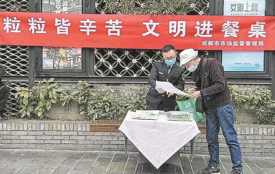 全國各地市場監(jiān)管部門隨即響應(yīng)、迅速跟進(jìn)。就成都而言,完善機(jī)制、部門協(xié)作、標(biāo)準(zhǔn)規(guī)范、行業(yè)自律、宣傳引導(dǎo)、執(zhí)法震懾,用“軟引導(dǎo)”與“硬約束”,營造起“厲行節(jié)約、反對浪費(fèi)”的良好風(fēng)尚。