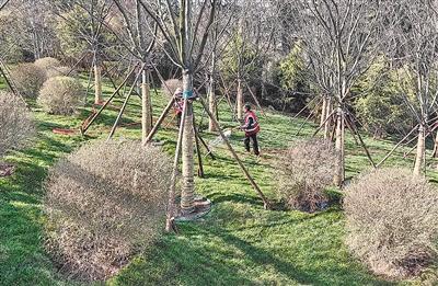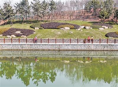 園林工人在養(yǎng)護(hù)太平山綠道周邊的草坪 。 邢志峰 攝