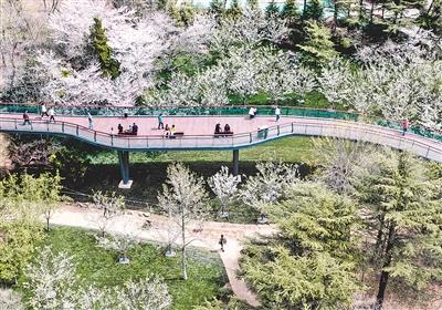 太平山綠道延安一路景觀橋從花海中穿過(guò)。 劉棟 攝