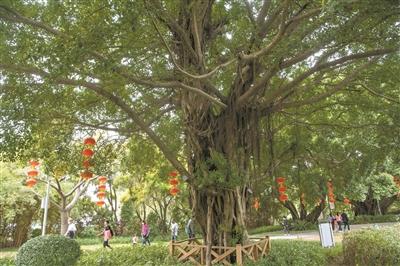 流花湖公園占地54.43公頃,其中湖水面積占60%,綠化占陸地面積88%。流花湖公園現(xiàn)址相傳是晉代芝蘭湖,后成為菜田。1958年市政府為疏導(dǎo)街道水患,組織全市人民義務(wù)勞動,建成流花湖等四個人工湖,后辟為公園,除原有蓄水防洪功能外,還是集游覽、娛樂、休憩功能為一體的大型綜合性公園。該株古樹位于流花湖公園,見證了流花湖從無到有的歷史過程,也陪伴市民游客走過春夏秋冬,與市民游客一同歡聲笑語。(記者 全杰)