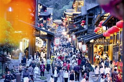 數(shù)據(jù)顯示,僅“五一”假期首日,洪崖洞景區(qū)進(jìn)園人數(shù)9.68萬人次,未進(jìn)園在洪崖洞周邊的滄白路、千廝門大橋橋面以及嘉濱路“打卡”游客瞬時(shí)最高客流量接近3萬人。