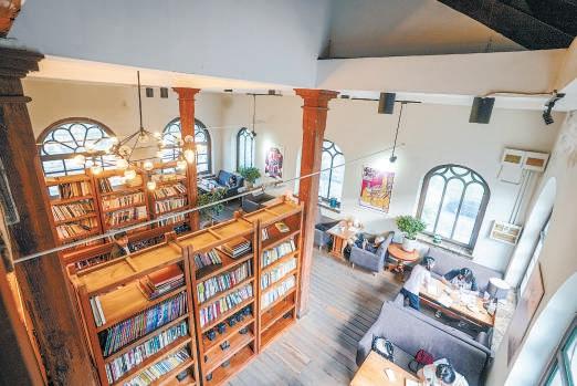 在西安門大街和西黃城根北街的交叉路口,一家名為1901Cafe的咖啡館開在位于街邊北側(cè)的西什庫天主教堂配樓。配樓延續(xù)了教堂哥特式的建筑風(fēng)格,里面則是上下三層高挑的磚木結(jié)構(gòu)建筑,配以復(fù)古的掛墻電話、打字機、舊報紙,斑駁的墻面上樹影婆娑,恍如隔世。人們或是在座席間交談、辦公,或是捧著書本,享受愜意的午后時光。