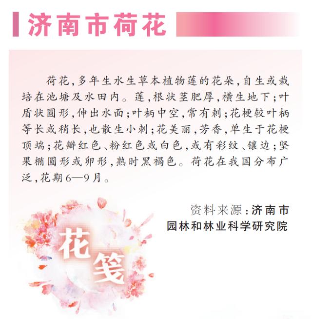 1986年,濟(jì)南市將荷花定為市花。荷花不僅以明艷色彩、淡淡香氣深入濟(jì)南人心中,更以高潔優(yōu)雅的品格,融入城市氣質(zhì),成為獨(dú)特的城市標(biāo)識(shí)。