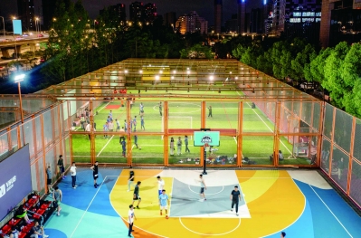 今夏,西城·夜未央運動街區(qū)的燈光球場上,不少上班族結(jié)束一天的工作后來此運動休閑。記者 段仁虎 攝