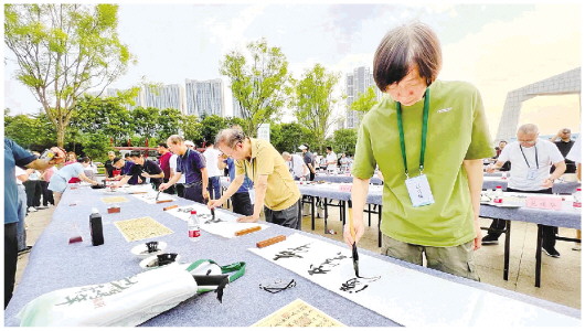 9月3日,“又見蘭亭序——第三屆全民書法大會”在臨沂書法廣場舉辦,書法家和老中青書法愛好者共書《蘭亭集序》,展現(xiàn)書圣故里的文化底蘊。(王思晴 徐明)