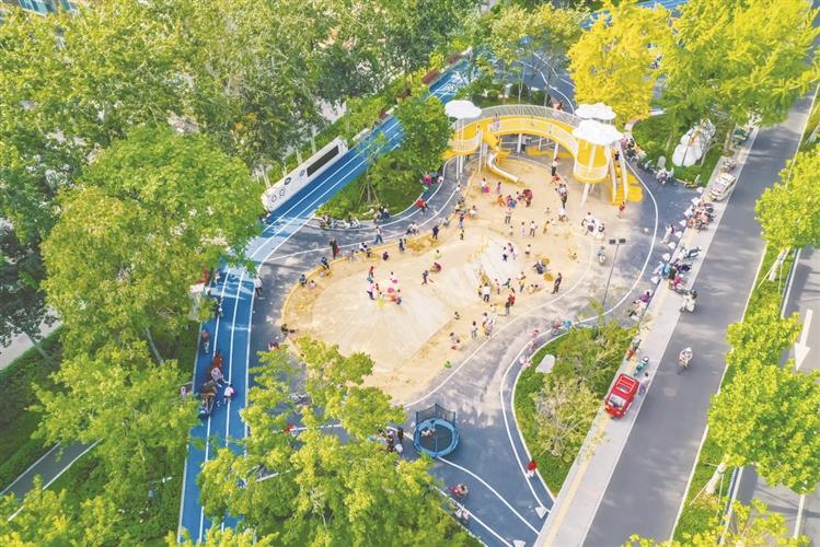 在陽(yáng)光的照耀下,一條紅白相間的城市綠道尤為顯眼,市民或悠閑鍛煉,或漫步其中……9月5日,在張店區(qū)中潤(rùn)大道口袋公園,休閑涼亭內(nèi)坐滿了老年人,他們有的打牌下棋、有的嘮家常,十分愜意。