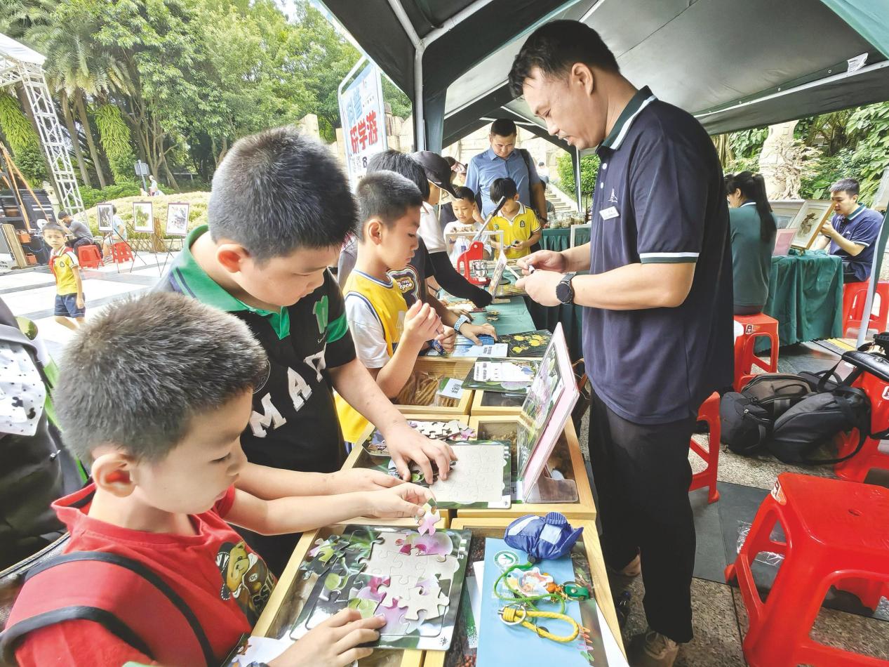 9月9日,2023年廣西野生動植物保護宣傳月主題宣傳暨南寧市野生動植物保護宣傳月在南寧市青秀山風(fēng)景區(qū)啟動。圖為小朋友們在自然集市參加互動小游戲。 記者 葉子榕 攝