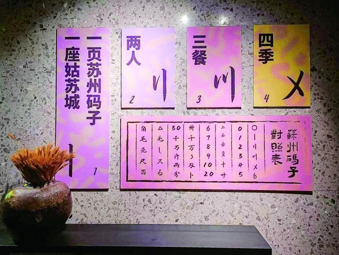 在雙塔市集,隨處可見的店招上印著一些“看不懂”的文字,南北貨區(qū)域的墻上有一本賬本,仔細(xì)查看,里面的文字同樣讓人心生好奇。經(jīng)過詢問,原來這是一種古時起源于蘇州的商業(yè)算法——“蘇州碼子”。汪曾祺在《草巷口》里寫著,“他用一桿很大的秤約了分量,用一張草紙記上‘蘇州碼子’。”汪曾祺是從“草紙賬”上認(rèn)識“蘇州碼子”的,但現(xiàn)如今,認(rèn)識“蘇州碼子”的人已經(jīng)不多了。