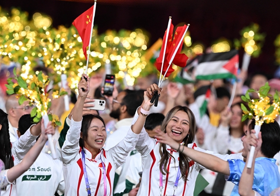 10月8日,中國(guó)運(yùn)動(dòng)員在閉幕式上。新華社記者 程敏/攝