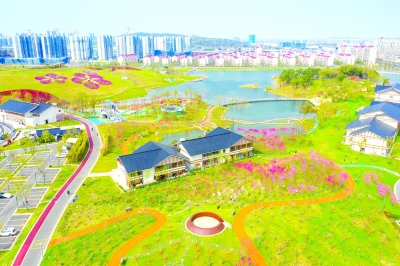 2020年,江北新區(qū)圍繞長江大保護(hù)、水環(huán)境提升的建設(shè)原則,對原有湖區(qū)進(jìn)行清淤和沖洗,并通過“拆、清、治、建、擴(kuò)、引、修”等措施,拆除城中村、清理各類垃圾、種植水生植物……從而徹底改善了湖區(qū)水質(zhì),打造富有特色、多樣化、親水性的公園景觀水系。2021年,桃湖公園正式對外迎客,新栽種的75個桃樹品種,讓這里成為南京最大的桃花觀賞基地,搭配原有植物,桃湖公園隨處可見喬木、灌木、草坪,到處都是大自然的氣息。如今,桃湖公園已成為當(dāng)?shù)鼐用裨诩议T口休閑游玩、鍛煉身體的一處絕佳場所。