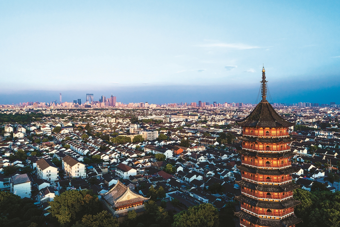 蘇州城北寺塔—東方之門(mén)“雙面繡”。 (蘇州市自然資源和規(guī)劃局供圖)