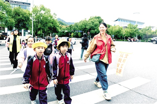 文明交通勸導志愿者引導行人文明出行。 向濤 攝
