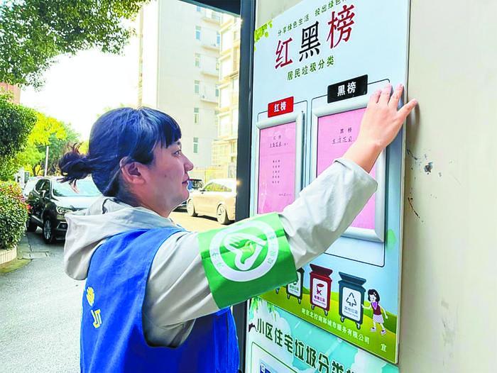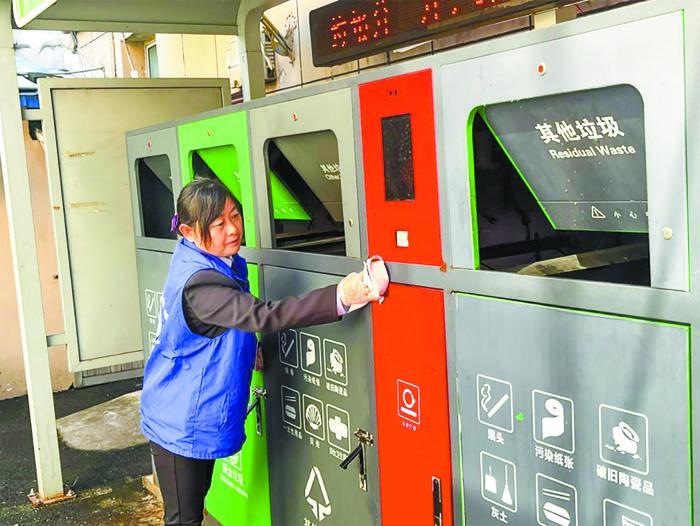 趙以芹是建鄴區(qū)一小區(qū)物業(yè)服務(wù)企業(yè)的保潔主管,也是一名垃圾分類志愿者、指導(dǎo)員,小區(qū)里的孩子親切地稱她為“垃圾分類婆婆”。她每天穿梭在小區(qū)收集房亭周邊,早晨上崗的第一件事就是掀起一個(gè)個(gè)垃圾桶蓋仔細(xì)查看,“部分垃圾是指導(dǎo)員下班后投放的,不知道分得好不好,我得抓緊時(shí)間檢查一下,否則垃圾累積多了,就更不好分了……”趙以芹說。每當(dāng)居民來投放垃圾時(shí),她總是習(xí)慣性地將垃圾袋打開仔細(xì)檢查一遍,若發(fā)現(xiàn)混投,會(huì)向居民進(jìn)行分類示范。久而久之,小區(qū)居民基本能做好生活垃圾分類工作。