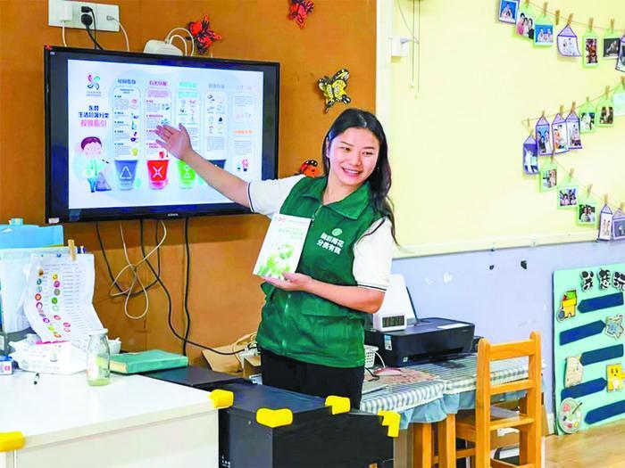 作為一名志愿者,從寶船社區(qū)開展垃圾分類工作開始,李昭婧就一直堅(jiān)持在垃圾分類各項(xiàng)工作的一線。宣傳過程中,她認(rèn)為,與其在垃圾桶旁等居民來,不如挨家挨戶上門宣傳,于是帶領(lǐng)一批志愿者開展入戶宣傳。輪到她值班時(shí),她就準(zhǔn)時(shí)站在收集點(diǎn)引導(dǎo)居民正確分類投放,即使遇到一些不太配合的居民,她仍以溫和的態(tài)度溝通。“雖然每個(gè)人的力量有限,但一言一行、一舉一動(dòng)必然會(huì)影響周圍更多的人?!崩钫焰赫J(rèn)為,只要人人都來參與垃圾分類,環(huán)境定會(huì)越來越美。